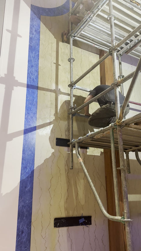 Several years later we completed a full months-long renovation of the Sanctuary. The marbelization process was very involved and laborious, but ultimately transformed the Parish.